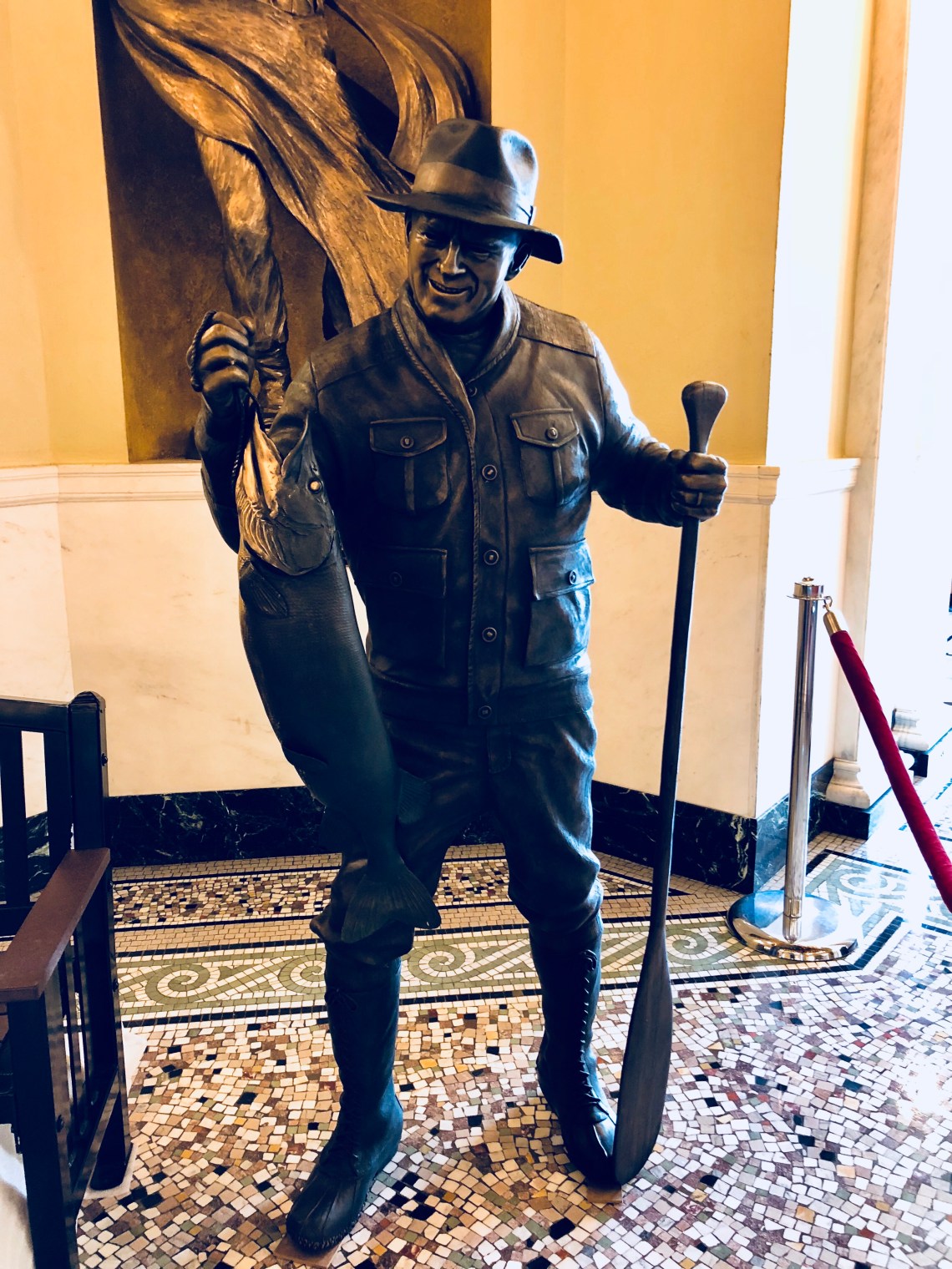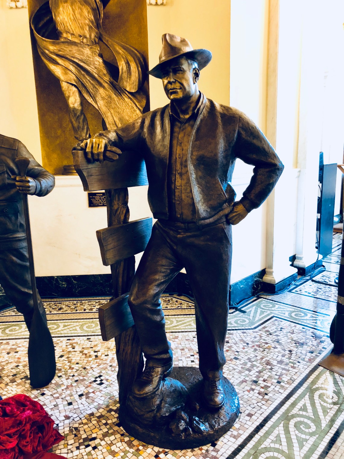 The life-size bronze statue of Gov. William McMaster by sculptor James Van Nuys portrays McMaster seated on a park bench. A gasoline can at McMaster’s feet recalls his efforts to take on “unconscionable” retail gasoline prices. The statue is slated to be placed at the intersection of Pierre Street and Sioux Avenue in downtown Pierre.The life-size bronze statue of Gov. Ralph Herseth, by sculptor James Michael Maher, portrays the farmer Herseth is his work clothes. It is slated to be placed near the State Capitol grounds at the intersection of Broadway Avenue and South Dakota Boulevard.The life-size bronze statue of Gov. M. Q. Sharpe by sculptors Lee Leuning and Sherri Treeby pays tribute to Sharpe’s role in developing the Missouri River dams and portrays Sharpe in fishing gear, holding a Northern Pike. It is slated to be placed near Lake Sharpe, in front of the American Legion Post 8 “cabin” at the end of Pierre Street on Island View Drive.