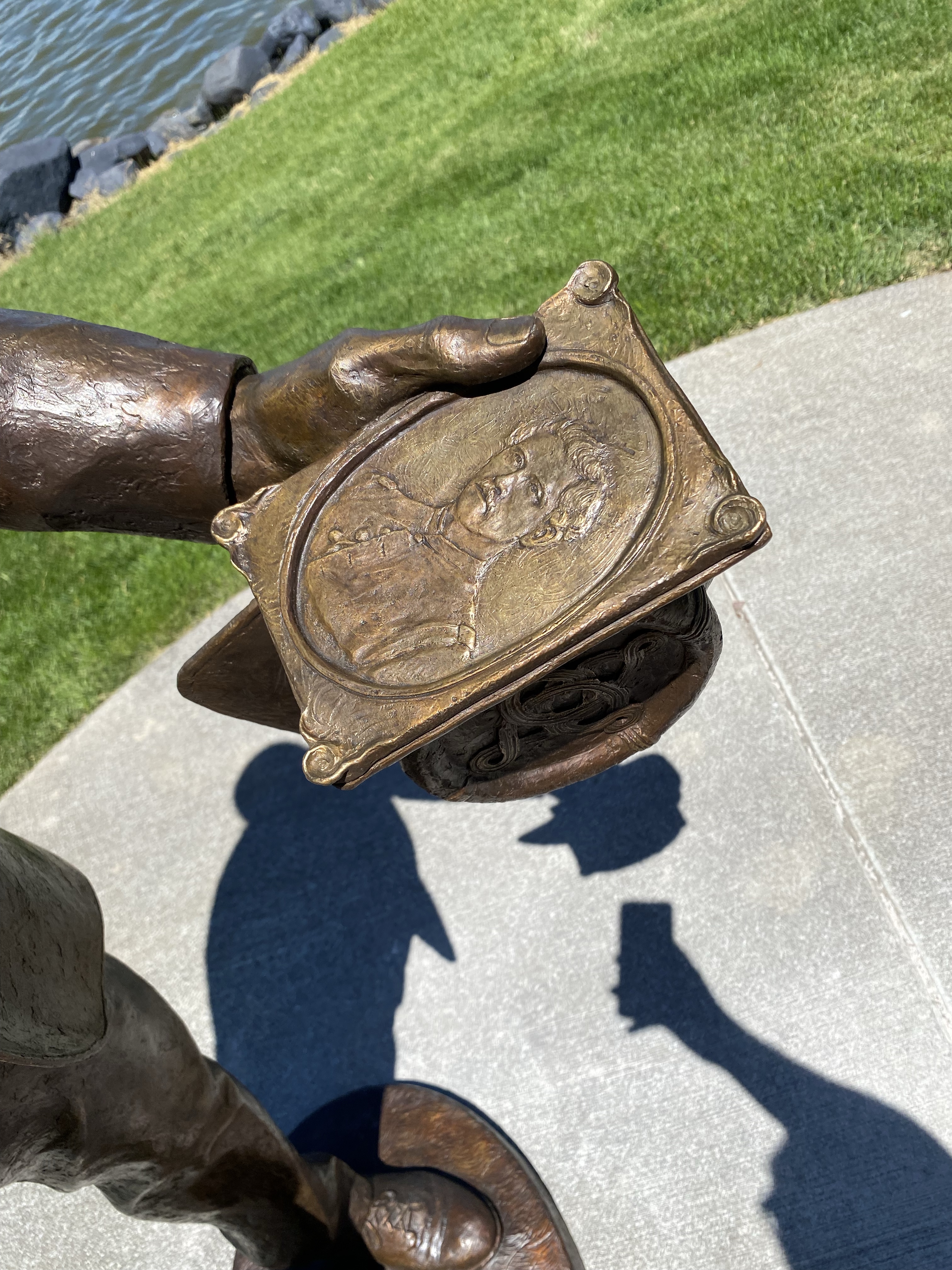 Sheldon’s statue, by sculptor James Michael Maher, portrays the second governor with his saber and hat from the Union Army, holding a small picture of himself during the Civil War. The statue is placed near the southeastern shore of Capitol Lake, across Capitol Avenue from the Civil War Memorial and near the Governor’s Mansion.