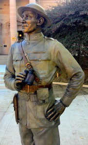 The Jensen statue pays tribute to Governor Jensen’s military service. As a member of the South Dakota National Guard, he had served on the Mexican border in the 1910s during the days of Pancho Villa, and then served in World War I, the only SD governor to have done so. After his time as governor, he returned to active duty during World War II, commanding his SDNG unit in the Pacific theater and serving in General MacArthur’s Australian headquarters. He acquired malaria while on active duty, which his children blamed for his aged appearance in the old portrait that they replaced.
