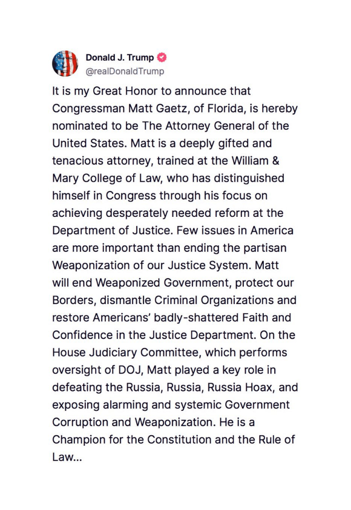 President Donald J. Trump released a statement on Truth Social, congratulating Thune and the rest of the new Senate Republican leadership team: