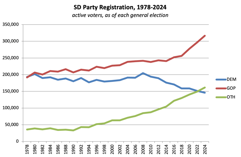 Beginning in 1978, the late Jim Soyer made a note each General Election day of party registration for Republicans, Democrats, and Independents or others. Soyer was a longtime Governor’s Office staffer, first joining the office in 1979 and, with a few interruptions, serving in that office until his retirement in 2015. He kept up his voter registration list until 2012, when he turned it over to me.